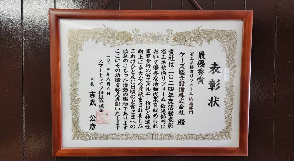 スマートライフ推進協議会が主催する表彰制度にて「省エネ快適リフォーム 給湯部門」で最優秀賞を受賞しました。