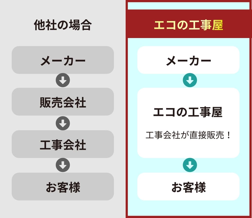 工事屋が直接販売することで、販売会社を通さず、中間手数料が発生しないからです。